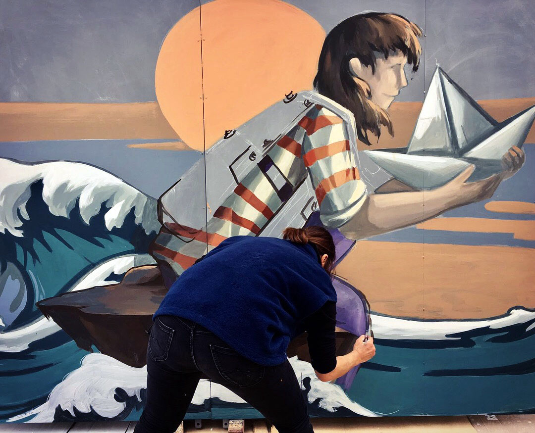 Non c’è per forza qualcosa a cui mi ispiro. Spesso ho un’immagine nella testa che voglio riprodurre su tela o muro per rappresentare un concetto, una storia, un contenuto. Le mie opere sono spesso dei racconti, per questo è importante per me la creazione di una bozza, uno sketch su un foglio, anche realizzato velocemente a matita che catturi quell’idea a livello compositivo, in un’immagine. O spesso mi ispiro guardando un quadro, o un’illustrazione di un artista contemporaneo come del passato, in cui prendo un dettaglio che emotivamente mi ha colpito e lo stravolgo attraverso il mio stile, per tirare fuori tutto un altro significato.