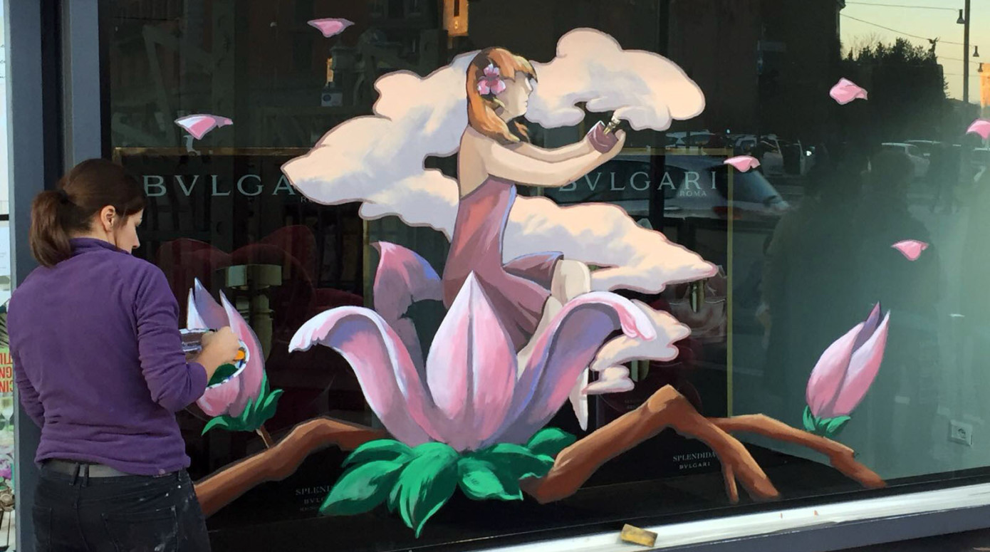 In questi ultimi anni, la collaborazione fra grandi imprese e attività artistiche ha dato dei buoni risultati, se si pensa alla campagna di Gucci, ad esempio, dell’ultimo anno. Le grandi aziende e le grandi marche stanno coinvolgendo artisti di più campi nel rivoluzionare lo stile e il marchio dell’azienda stessa, facendo appello alla creatività. E questo significa anche più lavoro per gli artisti, che non snaturano il proprio stile ma lo mettono a servizio di un messaggio pubblicitario. Ultimamente anche io ho collaborato, tramite un’agenzia, alla realizzazione delle vetrine artistiche per grandi marchi come Bulgari e Clarins. Sono riuscita comunque a interpretare il messaggio pubblicitario con il mio stile e quindi a non penalizzare la mia creatività. Allo stesso tempo è un modo per l’azienda per lanciare un prodotto in modo innovativo e invogliare la gente all’acquisto.