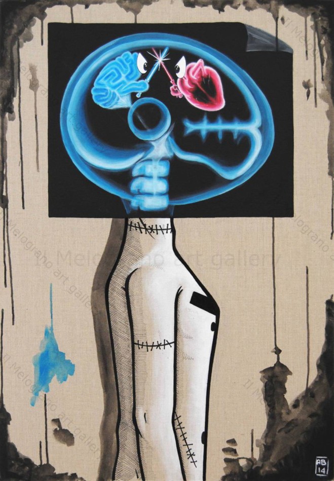 Dipingere ciò in cui credo, ciò che mi va e quando ho qualcosa da dire, se no meglio starsene zitti che produrre a prescindere. La creatività penso non vada ingabbiata o indirizzata, ma solo alimentata con stimoli nuovi di ogni genere. Il resto penso sia solo l’effetto dell’assimilazione di ciò. Non riesco per mia natura a “fare”, inteso nel senso di mettersi a tavolino, pianificare e poi eseguire. Credo nella creatività istintiva.