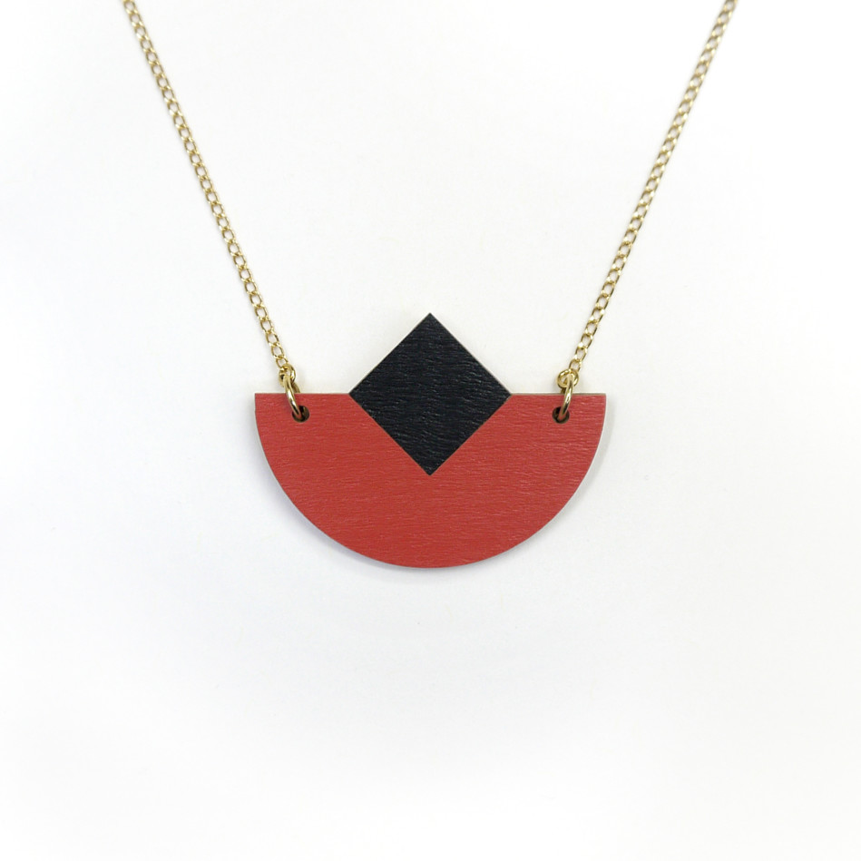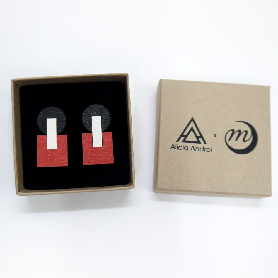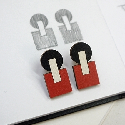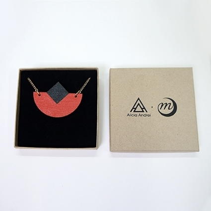 Alicia Andrei, grafica e illustratrice freelance parigina, ma soprattutto creatrice dell’omonimo marchio francese di gioielli in legno che rispecchiano il suo universo grafico e colorato.
