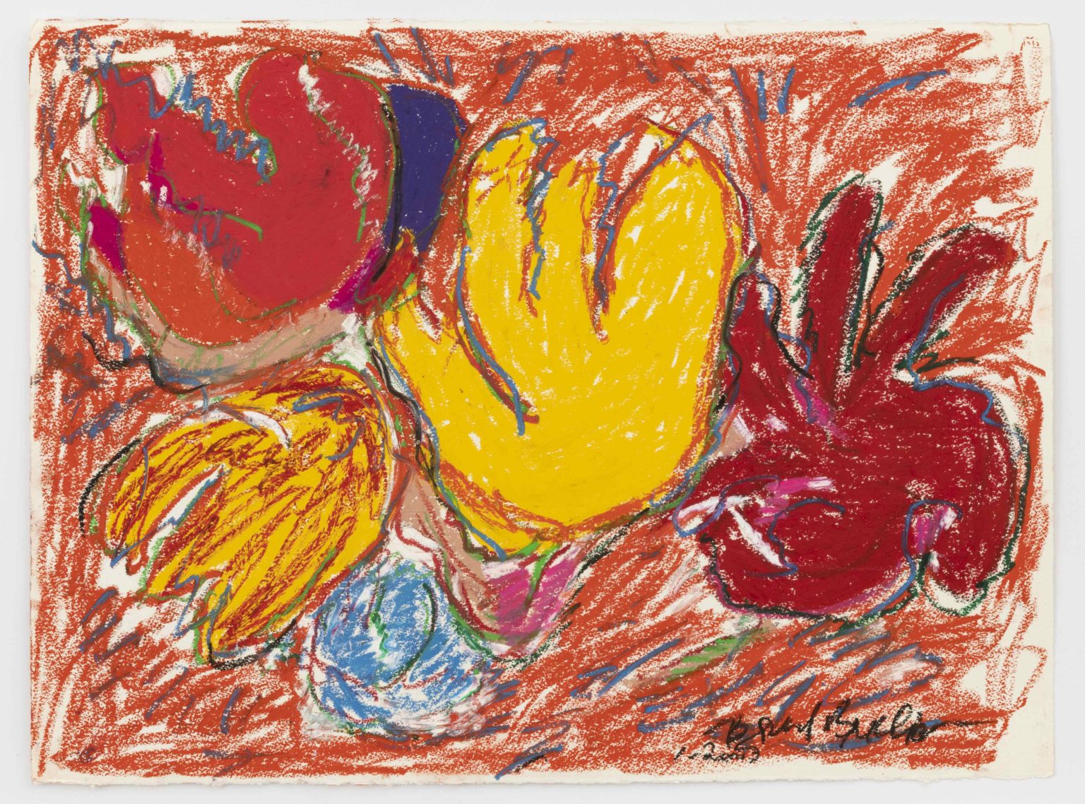Accanto ai dipinti, i libri d’artista e i fanzine ampliano il linguaggio: fotocopie, collage, testi brevi. Buchanan attraversa i medium senza gerarchie, rifiutando confini rigidi tra disegno, fotografia e scultura. Ogni tecnica è uno strumento per interrogare il rapporto tra spazio costruito e identità.
