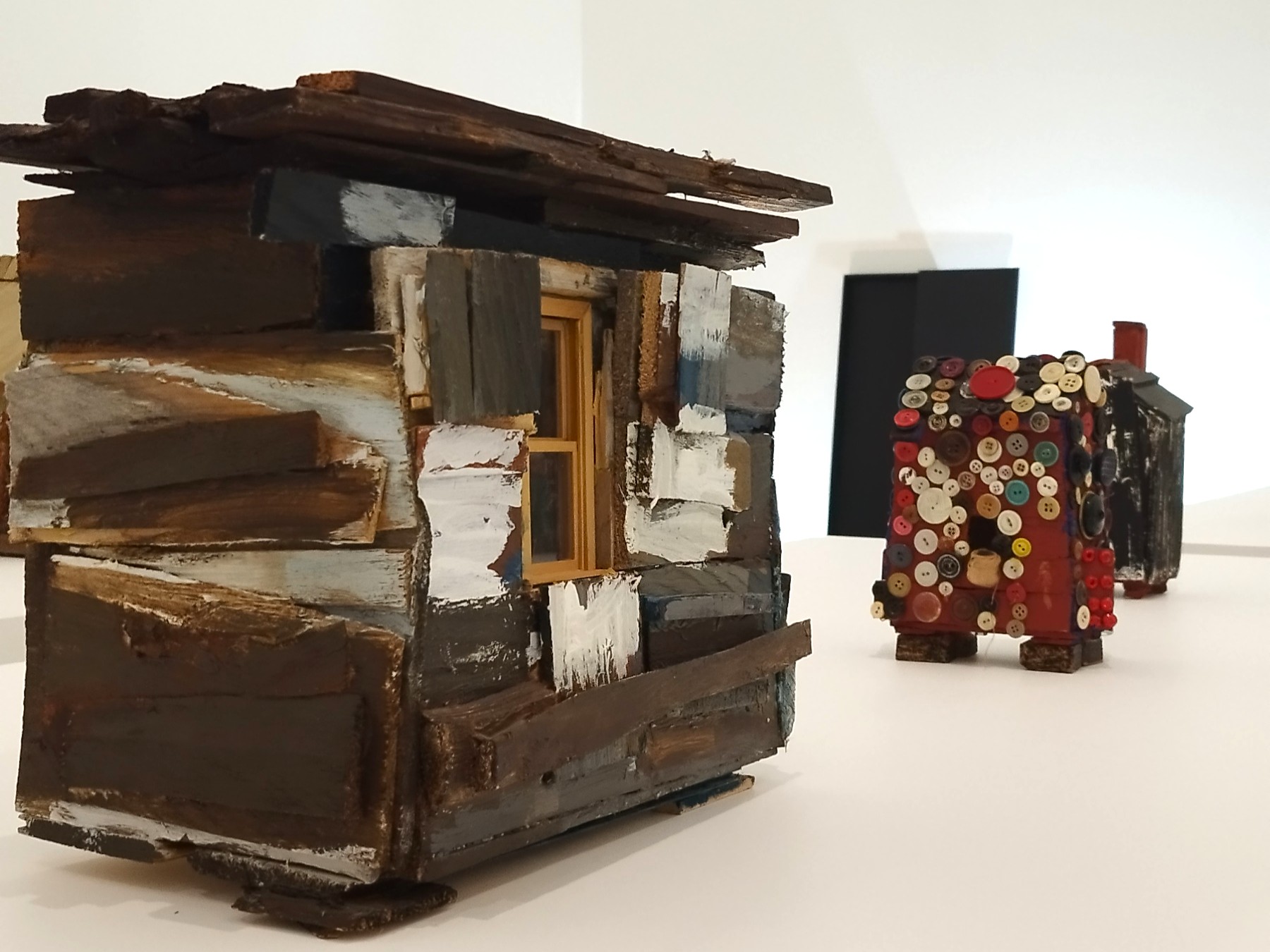 Dalla metà degli anni Ottanta, Buchanan si concentra sull’architettura vernacolare del Sud, dando vita alle celebri shacks, piccole sculture che evocano le abitazioni autonome delle comunità rurali nere della Georgia. Fragili, colorate, apparentemente naïf, queste capanne sono in realtà dispositivi complessi.