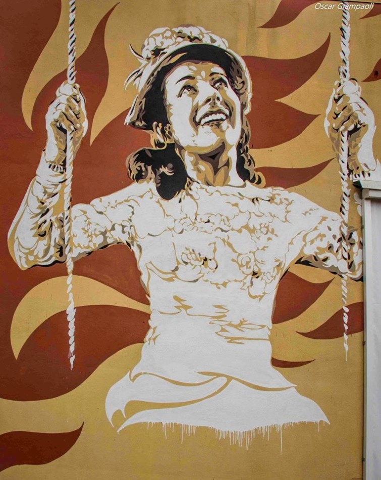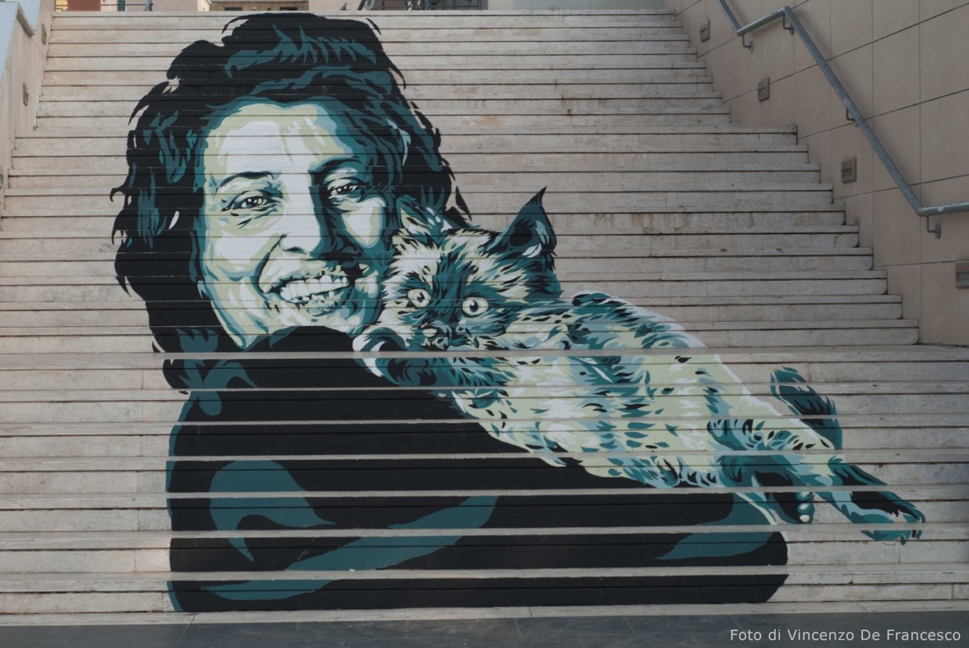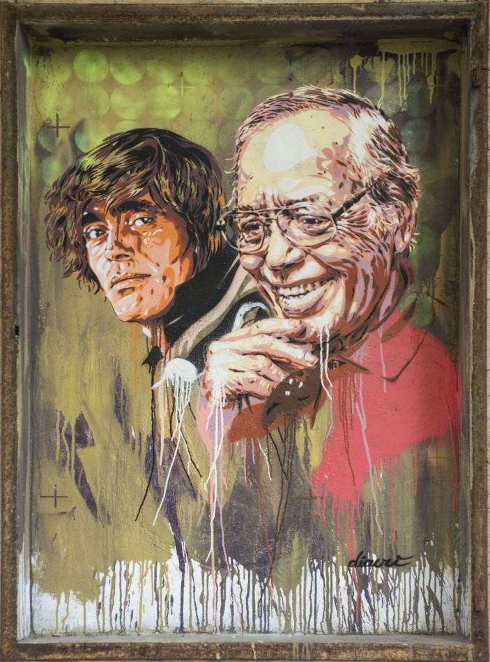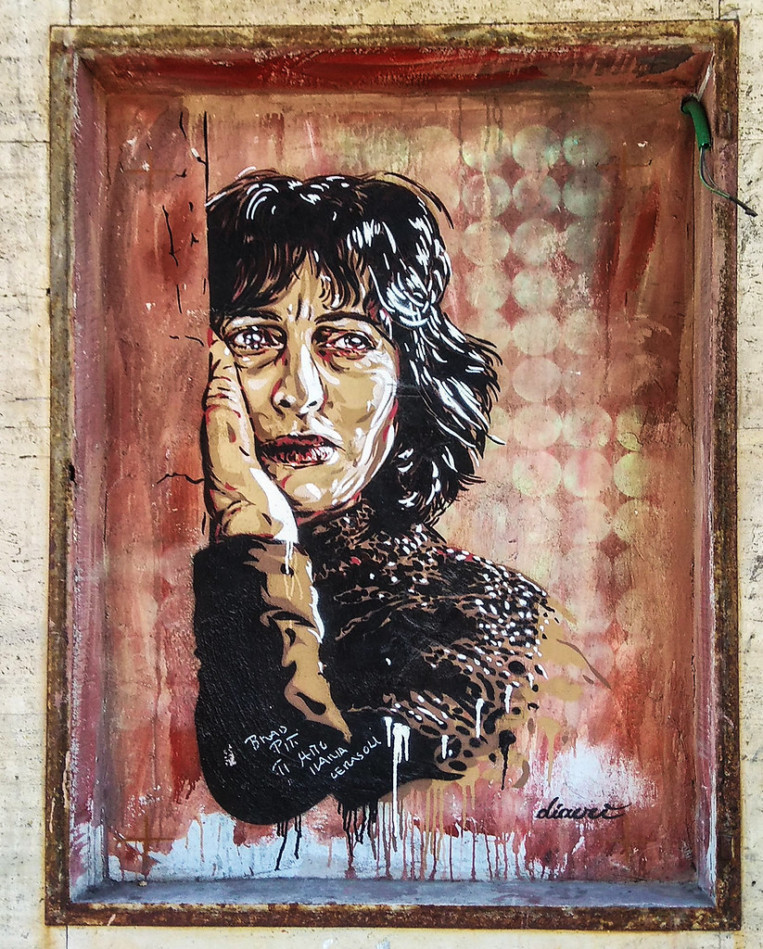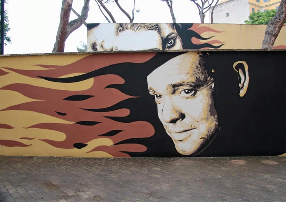 Posso dirti che quando frequentavo ancora all’Istituto d’Arte sono andato ad aspettare Federico Fellini sotto casa finché non sono riuscito a conoscerlo, ho inseguito Nanni Loy in metropolitana e ne ho combinate altre di questo genere, proprio per la grande passione che nutrivo nei confronti di questo linguaggio e di alcuni dei suoi autori. Da amante del disegno, dei libri e della musica per me il Cinema – e idem il Cinema d’animazione – è sempre stato un linguaggio attraente forse proprio per la sua peculiarità di utilizzare testo, immagine e suono. A un certo punto ho iniziato a utilizzare nelle mie opere d’arte urbana alcune immagini e personaggi tratti da film perché è un buon mezzo per parlare al cuore delle persone. Se il senso della tua opera puoi esprimerlo con un volto di un’attrice o un fotogramma reinterpetati da te, perché non farlo? Ad esempio col progetto Popstairs delle scalinate dipinte ho voluto esprimere l’esigenza di vedere più monumenti ‘al femminile’ nelle nostre città. Esprimere questo desiderio attraverso sguardi di attrici che ti osservano da quelle scalinate mi è sembrato del tutto naturale.