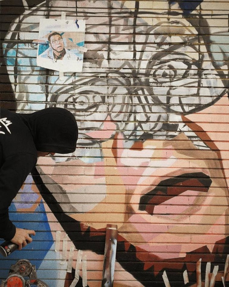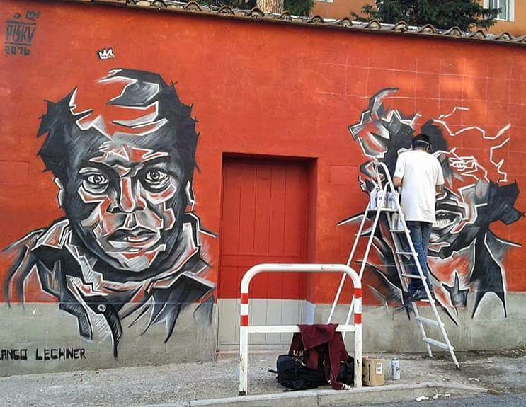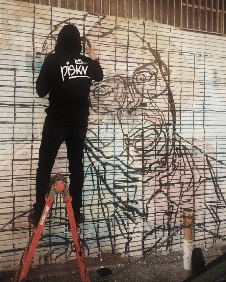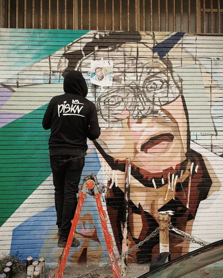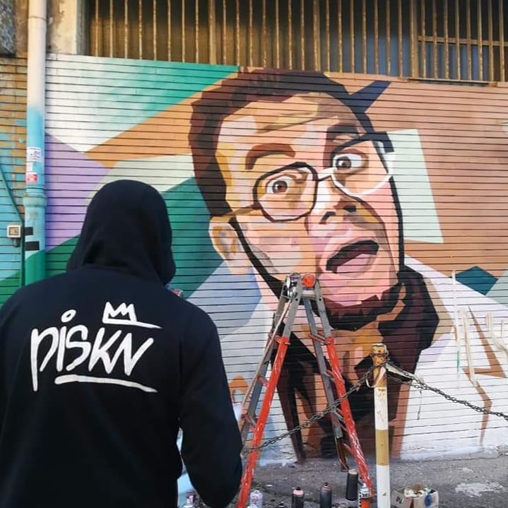 Francesco Persichella, alias Piskv, realizza il murales di Furio in omaggio a Carlo Verdone