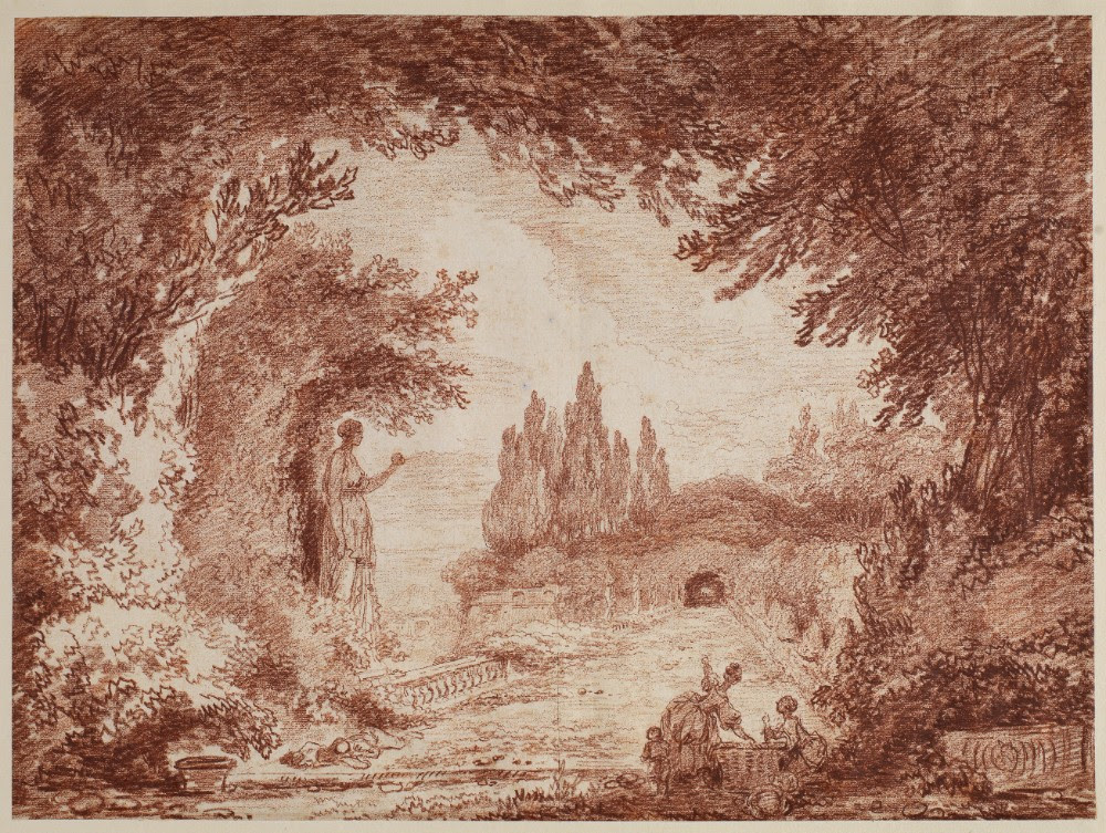 Jean-Honoré Fragonard, Terrasse dans un jardin italien, vers 1760, sanguine sur papier vergé, 32,6 x 44,1 cm, Londres, Courtauld Gallery © Courtauld ;