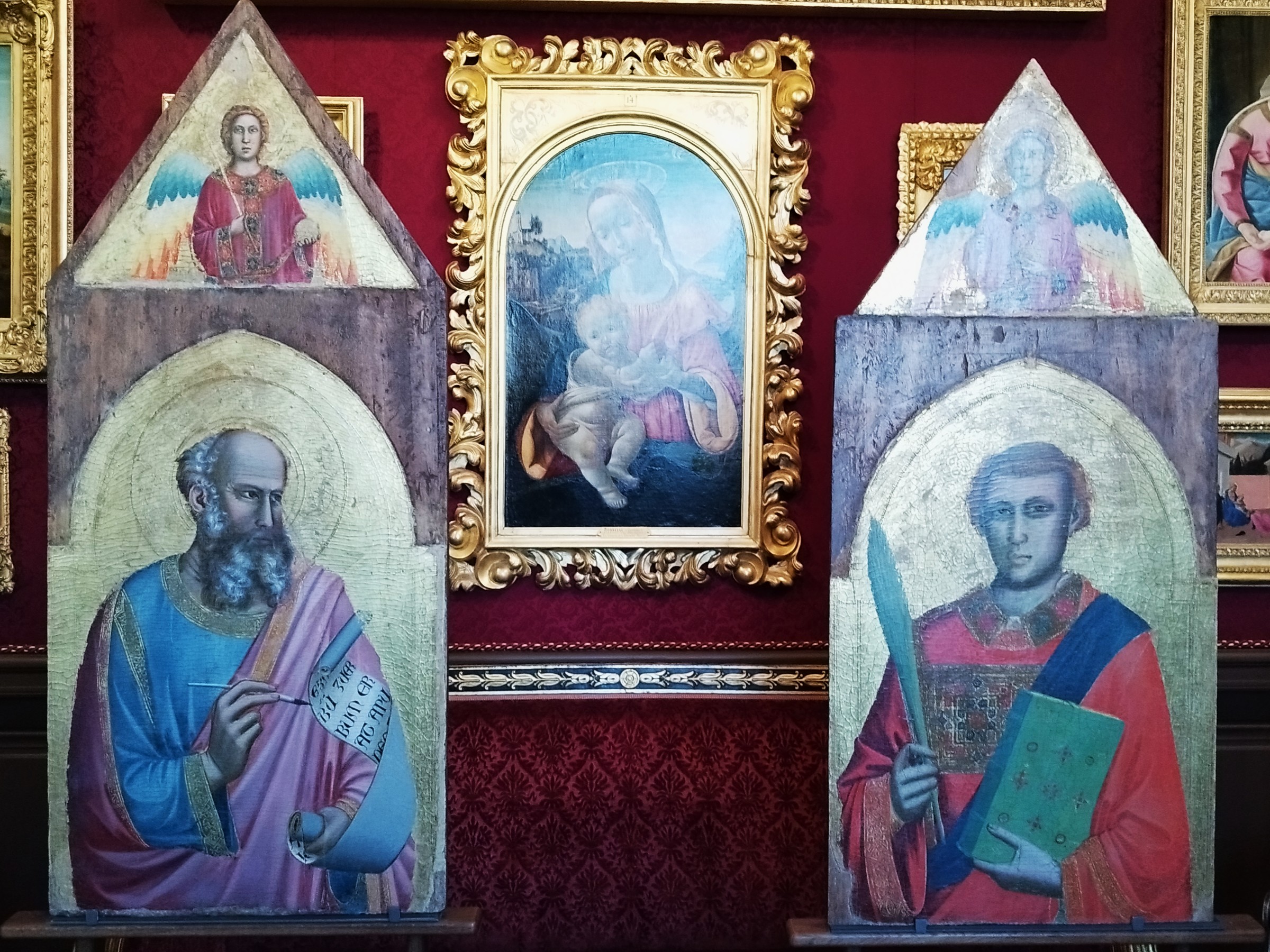 Le tavole, raffiguranti San Giovanni Evangelista e San Lorenzo, si ritiene possano aver fatto parte di un polittico, forse uno di quelli citati da Ghiberti e Vasari in Santa Croce, forse la Cappella Pulci-Berardi. La loro datazione coincide con le decorazioni della Cappella Bardi, quindi intorno al 1325, collocandole in uno dei momenti più fertili della carriera di Giotto. Per la prima volta, il Cabinet du Giotto del Musée Condé accoglie davvero il “padre della pittura occidentale”, un debutto che ha il sapore di autentica consacrazione.