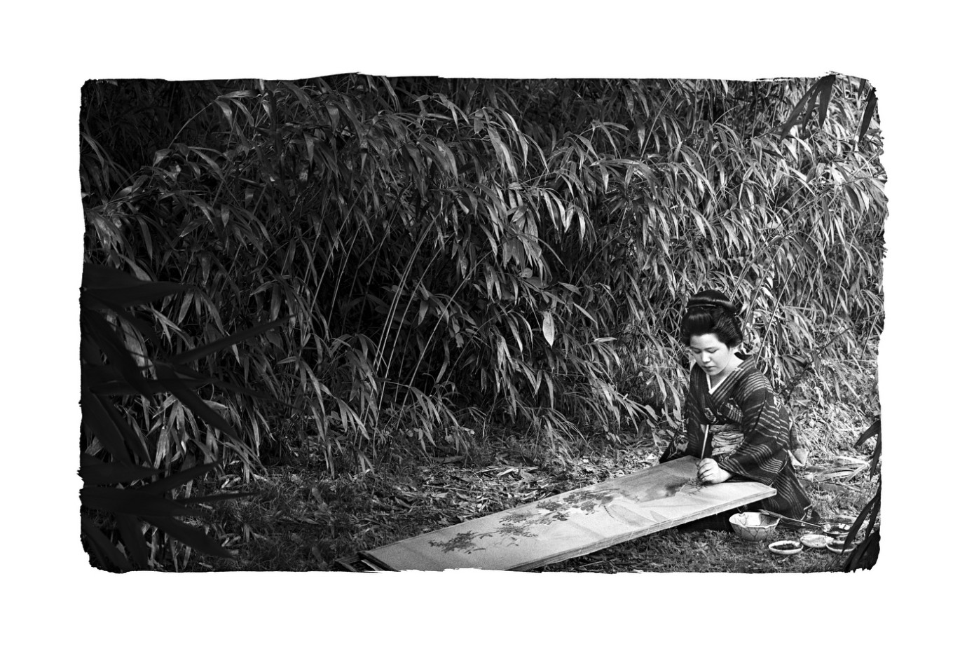 Al momento sto lavorando a un progetto dal cuore Giapponese dal titolo “Ki kio (Ritorno a casa)”, qualcosa di tecnicamente molto simile al precedente, con la differenza di utilizzare materiale d’archivio esclusivamente giapponese fuso a fotografie scattate durante un mio recente viaggio in Giappone. Le foto rappresentano figure femminili dei primi del novecento in abiti tradizionali, immerse in foreste di bambù. L’idea che mi ha sempre affascinato sin dall’inizio è come quelle figure di donne in Kimono, fotograficamente cristallizzate nel tempo, possano essere liberate dall’emulsione “argentica” in cui si trovano confinate. Grazie a un’alchimia digitale, dopo più di un secolo, possono finalmente ritornare in intimità con le loro radici e sentirsi nuovamente a “casa”, assorte in un istante eterno di riflessione.