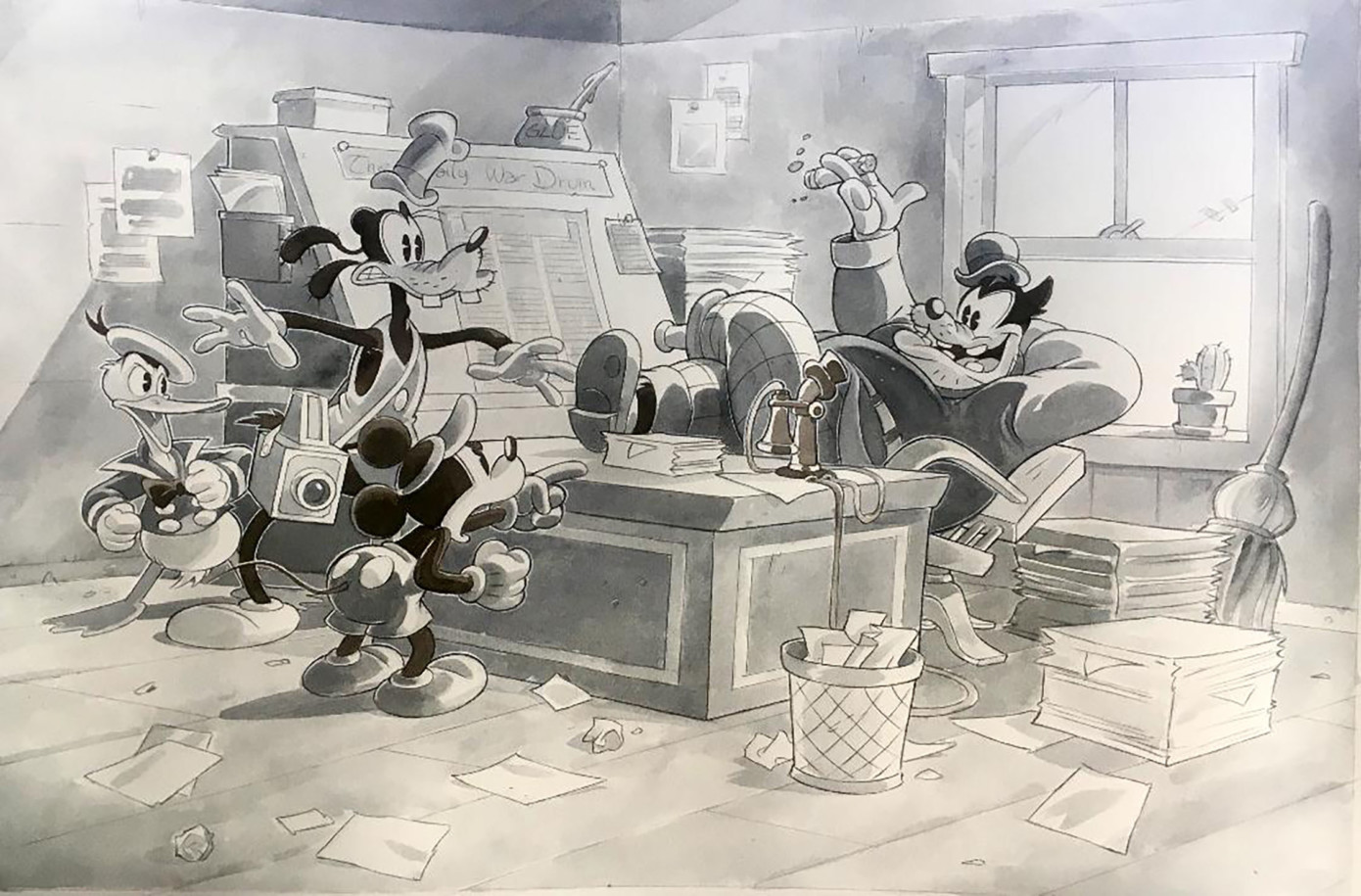 Per Disney ho in uscita un po’ di cose  a dicembre sul settimanale Topolino, in particolare ci sono due storie celebrative per il compleanno di Mickey Mouse, scritte da Francesco Artibani, di cui una in stile anni trenta e una con Eta Beta, una terza invece scritta da Tito Faraci, è una bella storia natalizia. Per il futuro ho tante cose nel cassetto ad aspettarmi in progetto con amici e colleghi, ma non le voglio anticipare perché non so a quale dare la precedenza.