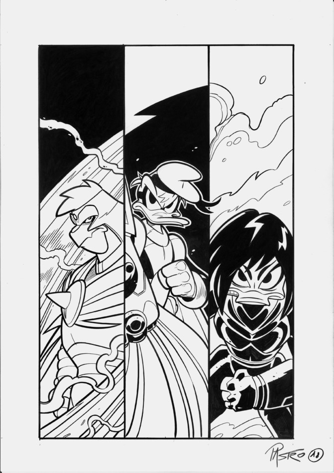 Lorenzo Pastrovicchio, triestino di nascita, fumettista per Marvel, Panini e Walt Disney Italia , dalla metà degli anni ’90, segna ufficialmente l’inizio della collaborazione effettiva con la Walt Disney Co. Italia, per la quale esegue anche i primi lavori di merchandising e licensing (illustrazioni per puzzle, abbigliamento, pubblicità, etc). Dal 1995 continua la sua collaborazione con diverse testate di fumetti della Walt Disney: Topolino (storie a fumetti), Grandi Classici (copertine), Paperinik (copertine e storie a fumetti), Giovani Marmotte (copertine e fumetti), Minni & Co. (fumetti). A fine anni ’90 inizia la collaborazione con la testata PKNA – Paperinik New Adventures, sempre della Disney, di cui ha realizzato molte tavole.