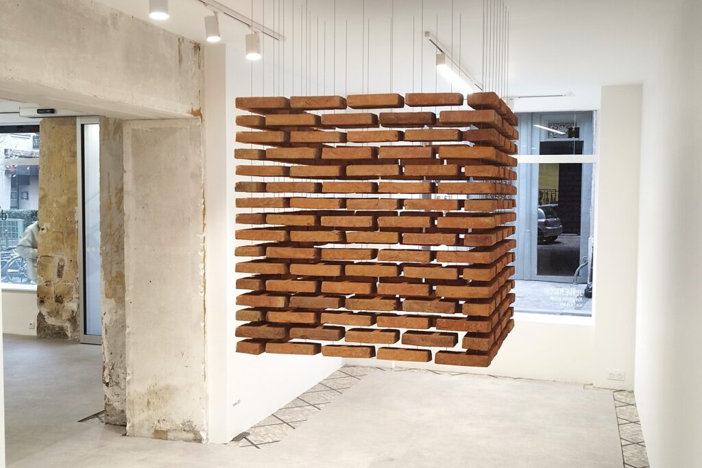Con L’espion (foto 3), Macchi introduce una dimensione architettonica e corporea della percezione. La struttura in mattoni invita a osservare lo spazio circostante da un punto apparentemente protetto, ma l’illusione dura poco. Chi guarda diventa a sua volta visibile, esposto, vulnerabile. Il riferimento al panopticon settecentesco ribalta le dinamiche di potere, trasformando la sorveglianza in fragilità. L’opera mette in crisi l’idea di controllo e interroga il ruolo dello spettatore, sempre più consapevole della propria posizione all’interno del sistema visivo.