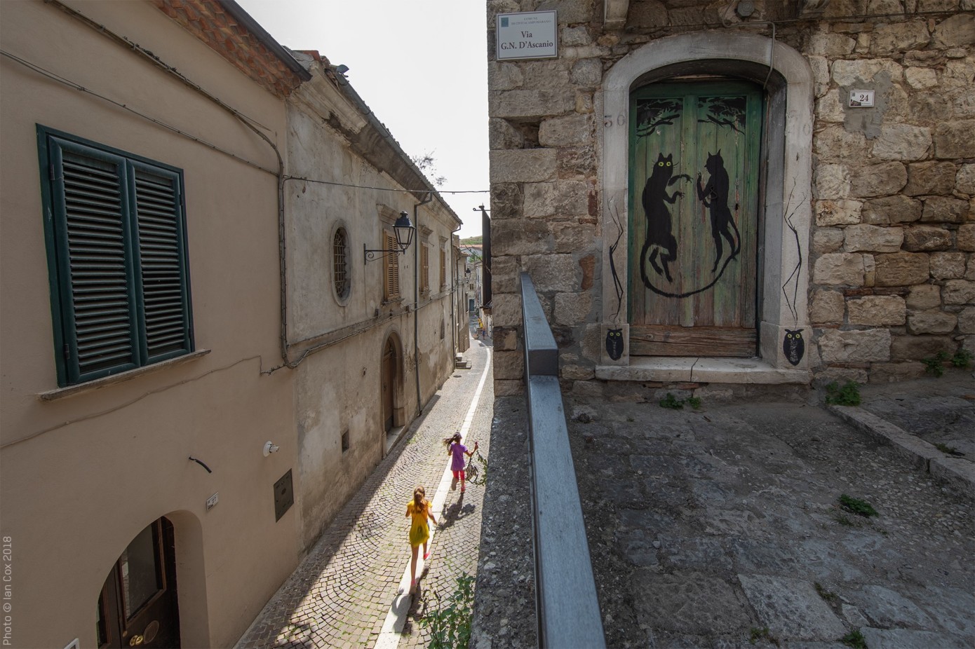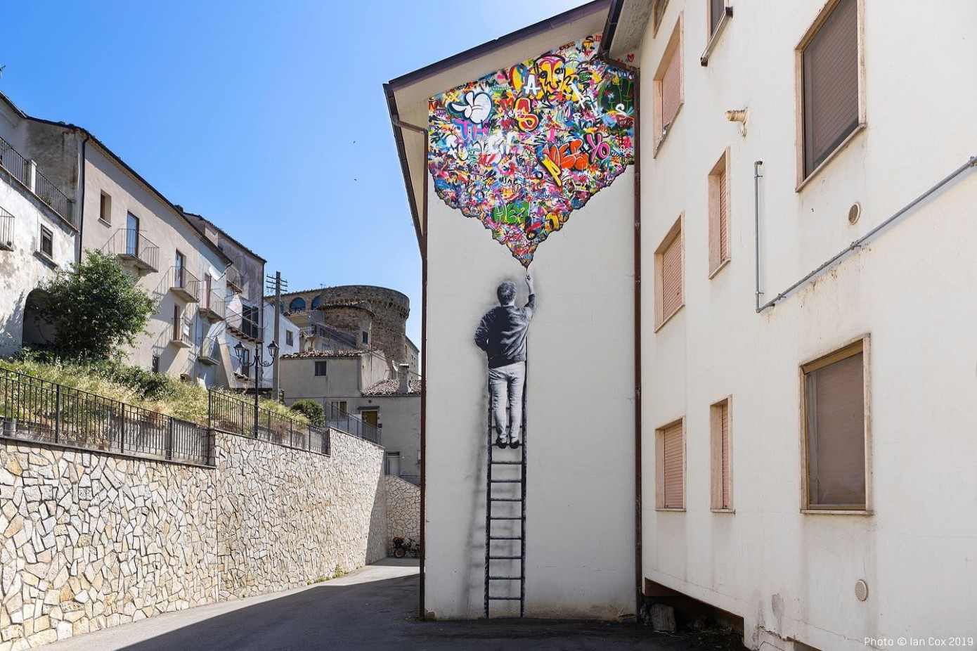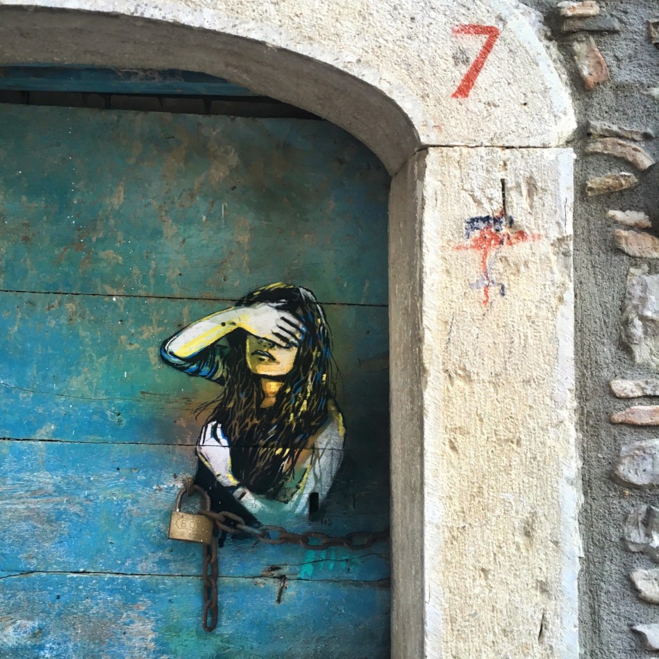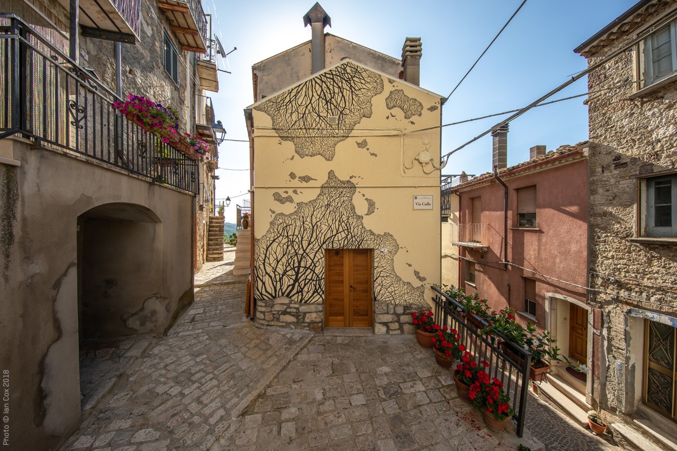 Era il 2014 quando Alice ha ricevuto un invito dalla Pro Loco di questo Paesino con sole 400 anime che stava vedendo diminuire, se non sparire del tutto, la popolazione autoctona e in cui si chiedeva aiuto all’arte per rivitalizzare il territorio. Da allora, attraverso l’opera corale di giovani creativi provenienti da tutto il mondo e chiamati gratuitamente a fornire il proprio contributo artistico, sono stati aperti nuovi esercizi commerciali, si sono insediati alcuni nuovi nuclei familiari e decine e decine di visitatori si apprestano ogni anno a cogliere “in diretta” la fantasia grafica degli artisti e della stessa Alice, insieme alla complicità degli stessi abitanti.