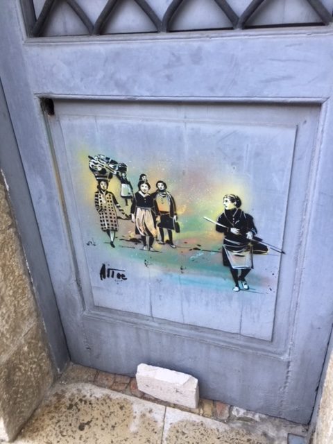 “Sono arrivata a Civita alcuni anni fa per una coincidenza. Ero a New York quando ho ricevuto l’invito dalla Pro Loco del paese per dipingere lì, ma ciò che l’autrice dell’email non sapeva è che mio nonno era nato e cresciuto a Civita. Così, quando sono arrivata, sono riaffiorati in me i ricordi di quando ero bambina. Soprattutto la commozione è stata vedere la resistenza di queste persone che continuano a vivere fuori dal mondo, senza abbandonare le loro radici. Ho dipinto sulle vecchie porte e sui muri delle case abbandonate le scene di vita di un tempo. Dopo il mio passaggio a Civita si sono cominciati a vedere i primi turisti. È nata da qui l’idea del festival, l’arte urbana che aiuta a risollevare l’economia del paese, ma soprattutto fornisce una prospettiva di vita agli abitanti per contrastare lo spopolamento che ha investito la regione negli ultimi decenni.