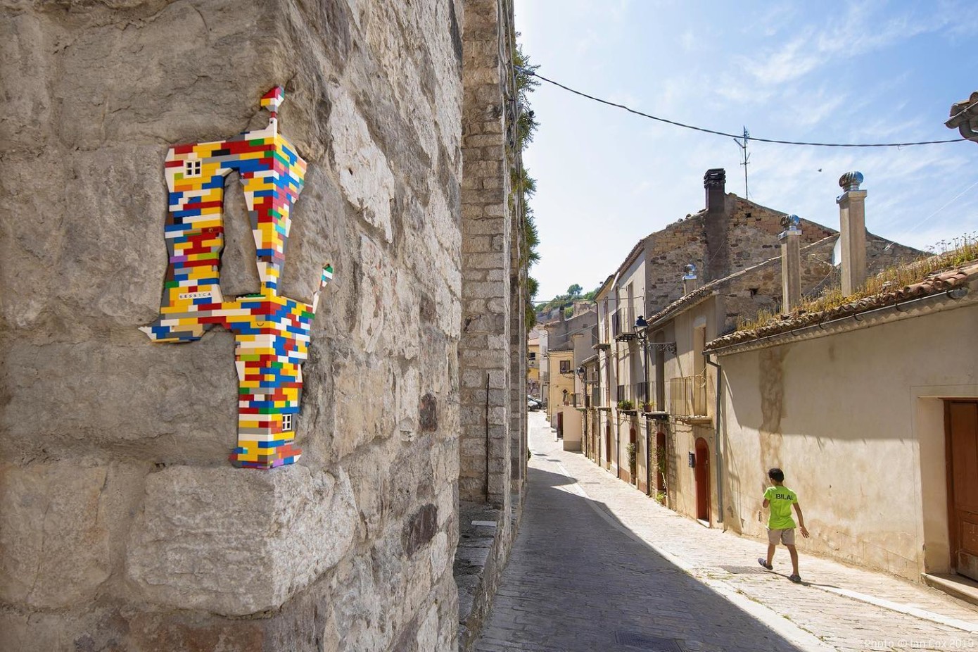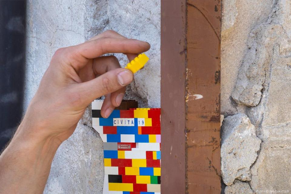 Jan Vormann, artista francese che vive in Germania e da sempre lavora con i Lego. A Civita ha ricostruito le parti mancanti dei muri delle case e delle rovine con gli storici mattoncini. Un’operazione che ha coinvolto anche la popolazione, e i bambini in particolare, per tentare di ridare una nuova immagine e vita agli edifici abbandonati…