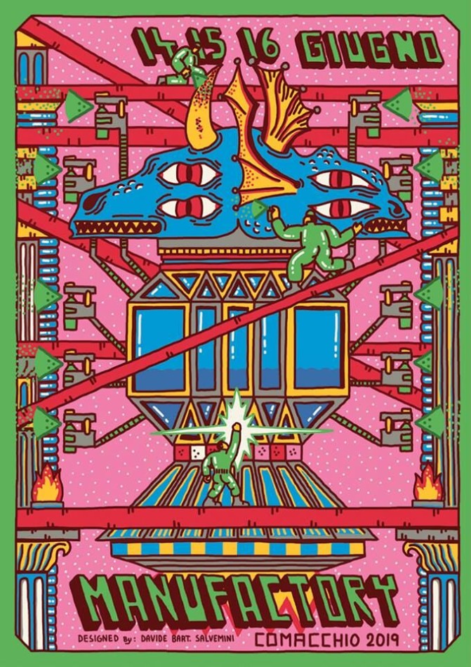 Sfhir, Man O ‘Matic, Chekos, Crisa, Gijs, Kikiskipi, Luca Ledda, Solo, Diamond, TMX, Luogo Comune, Rame 13, Giulio Vesprini, Gera, Riccardo Buonafede, Simone Carraro, Nsn997, Davide DPA, Isra Paez, Giorgio Je73, Fijodor, Giacomo Drudi, Noeyes, Alessio Bolognesi, Toni Espinar, Eleman e Giusy Guerriero saranno i protagonisti di Manufactory 2019, che si propone dicontinuare la riqualificazione delle mura perimetrali dello Stadio di Comacchio, iniziata l’anno scorso, aggiungendo 3 interventi dislocati sul territorio traComacchio, Porto Garibaldi e Lido degli Estensi.