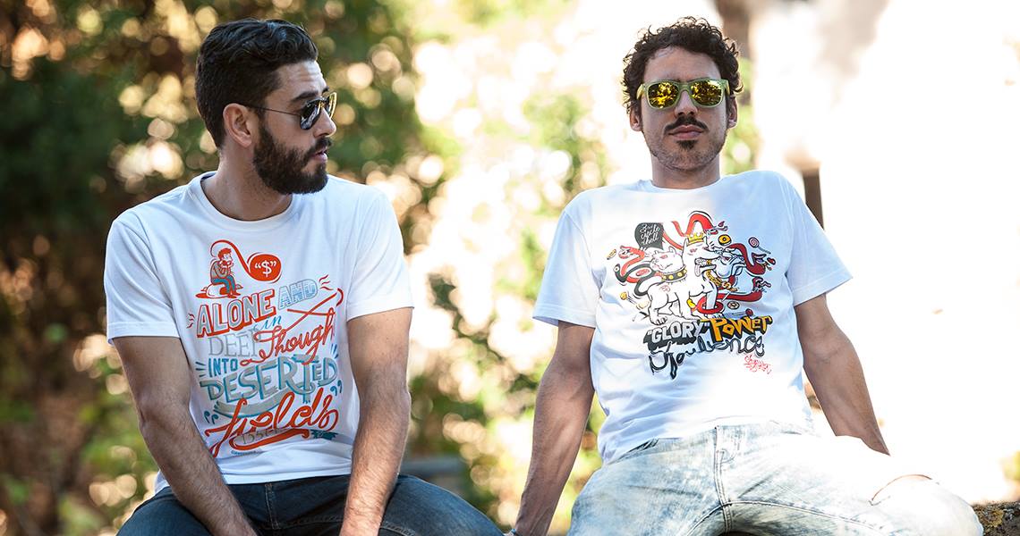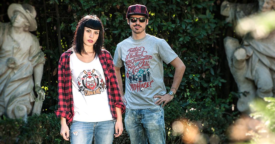 Composizioni di scritte, colori e personaggi disegnati a mano e poi vettorializzati, sono gli elementi principali delle collezioni. L’idea nasce su un pezzo di carta e poi, dopo tanto lavoro, finisce stampata, con cura, sul cotone di una T-shirt. Ognuna di esse porta con sé una storia italiana, unica e piena di particolari da indossare.