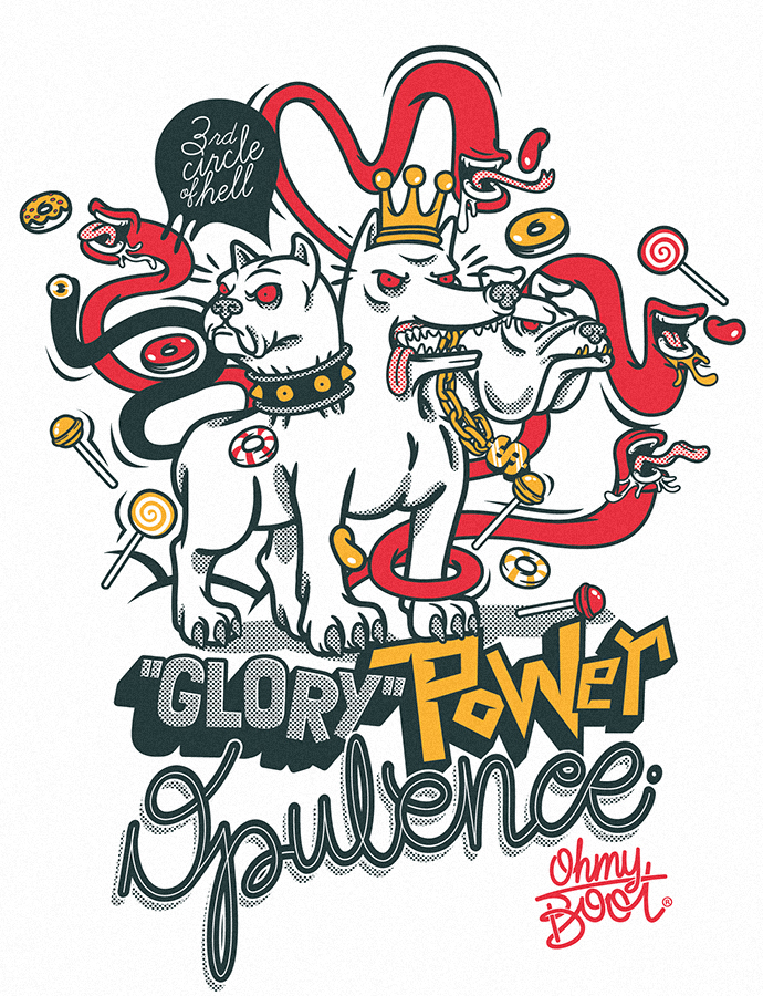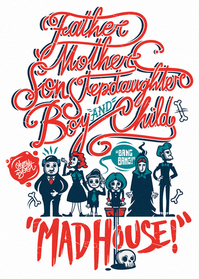 Ogni grafica è realizzata in vettoriale. Cerco di rappresentare ogni illustrazione con uno stile che fonde il fumetto, i cartoon e il mondo dei graffiti. I disegni sono molto iconografici e pieni di riferimenti all’opera in questione. Cerco di inserire anche molto lettering a supporto delle immagini per rendere tutto più comprensibile.