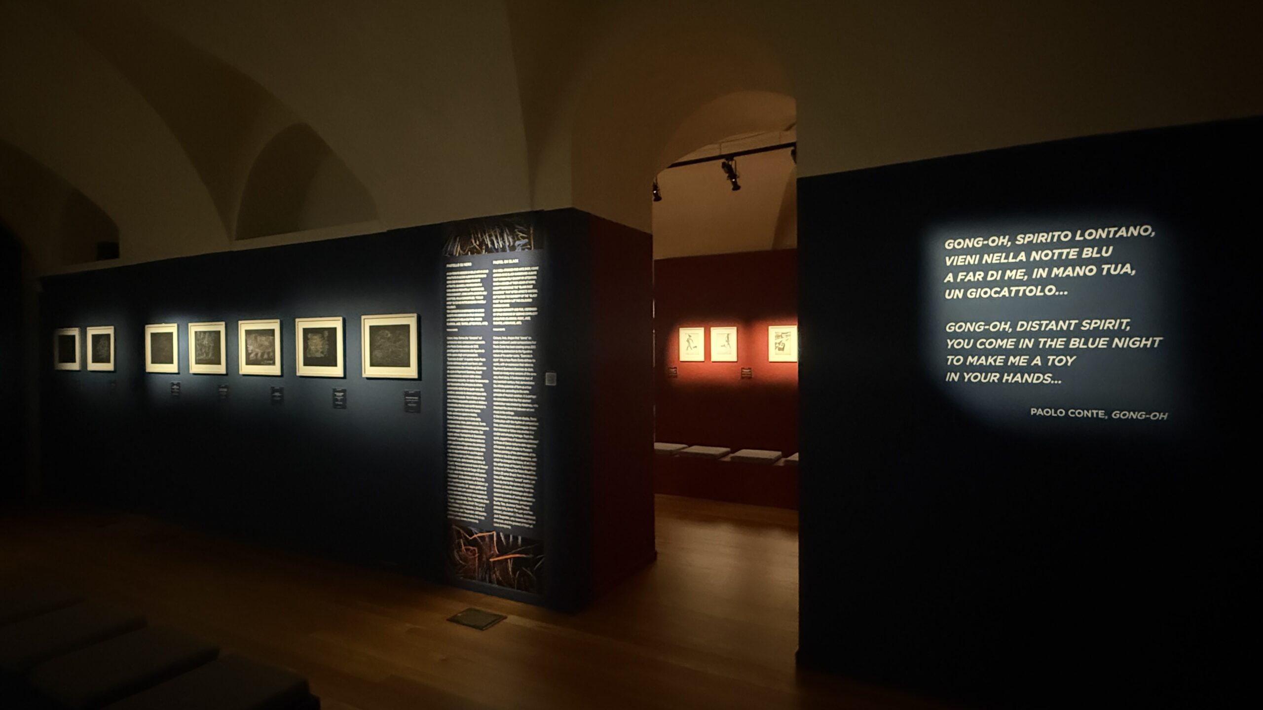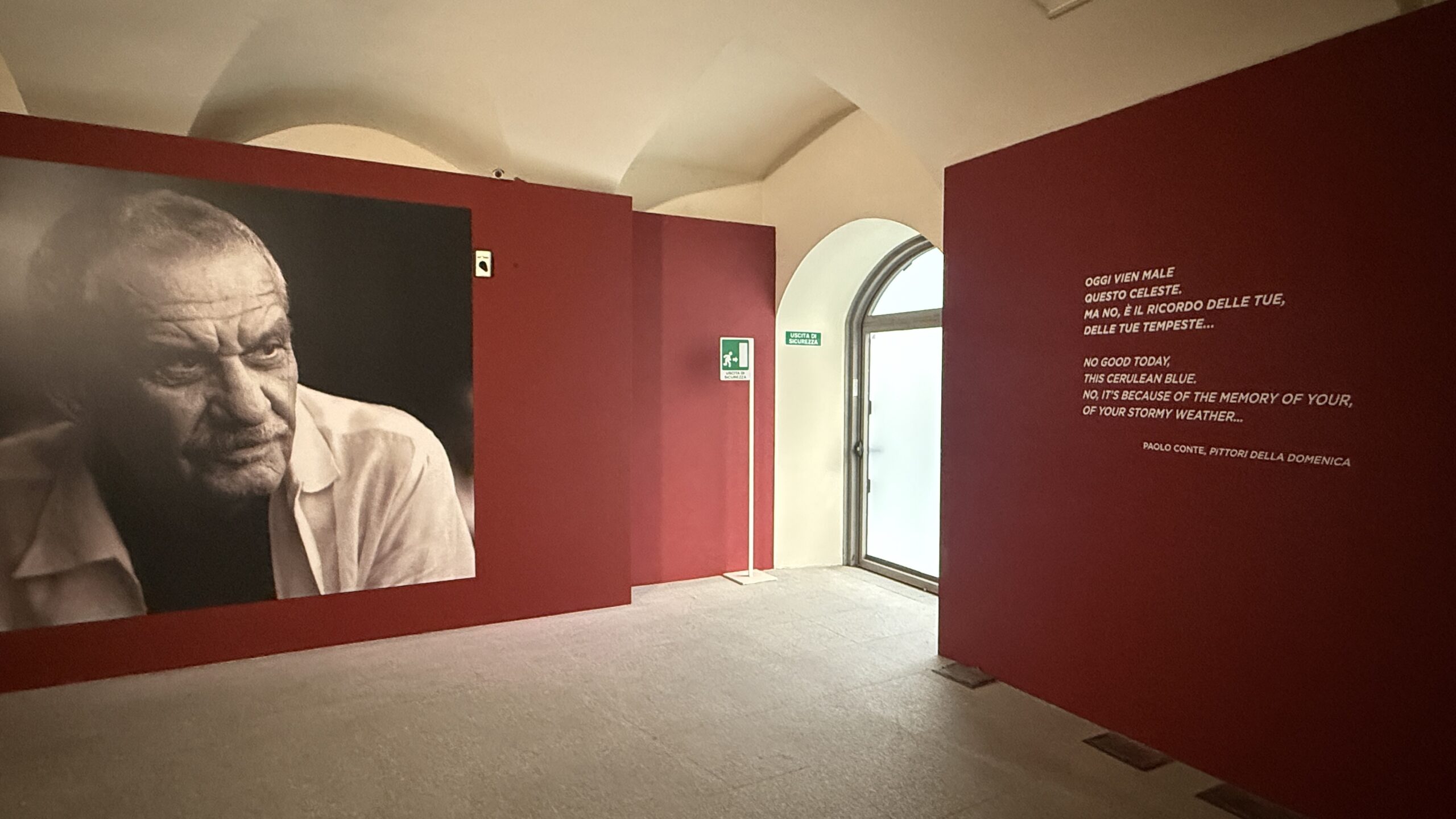 L’allestimento della mostra, studiato con cura e accompagnato dallo stesso Paolo Conte, segue un ordine sorprendente, un flusso narrativo che rispecchia la sua libertà creativa. Ogni sala è un capitolo del suo universo poetico, dove i disegni diventano canzoni silenziose e le tempere assumono il ritmo di una ballata jazz.