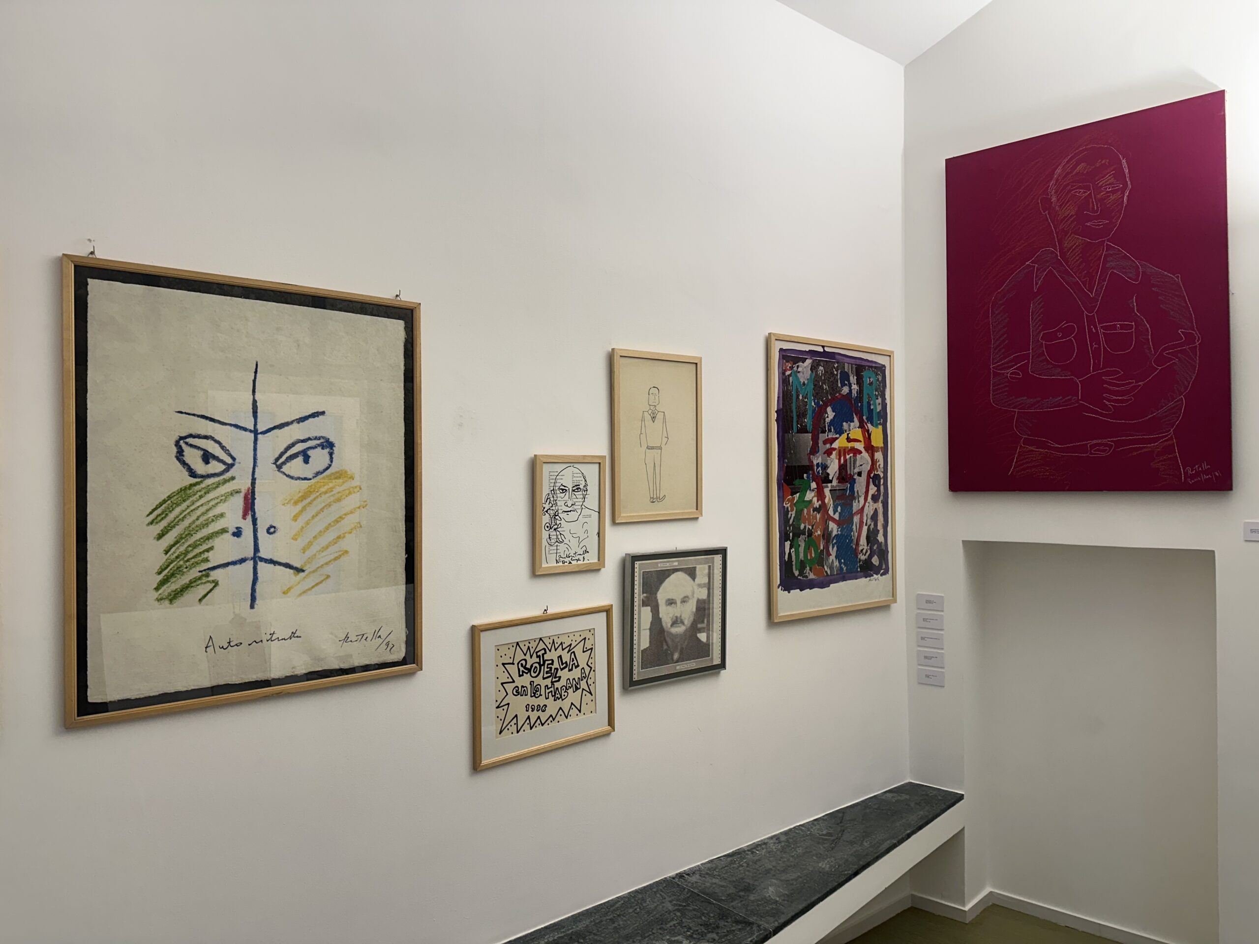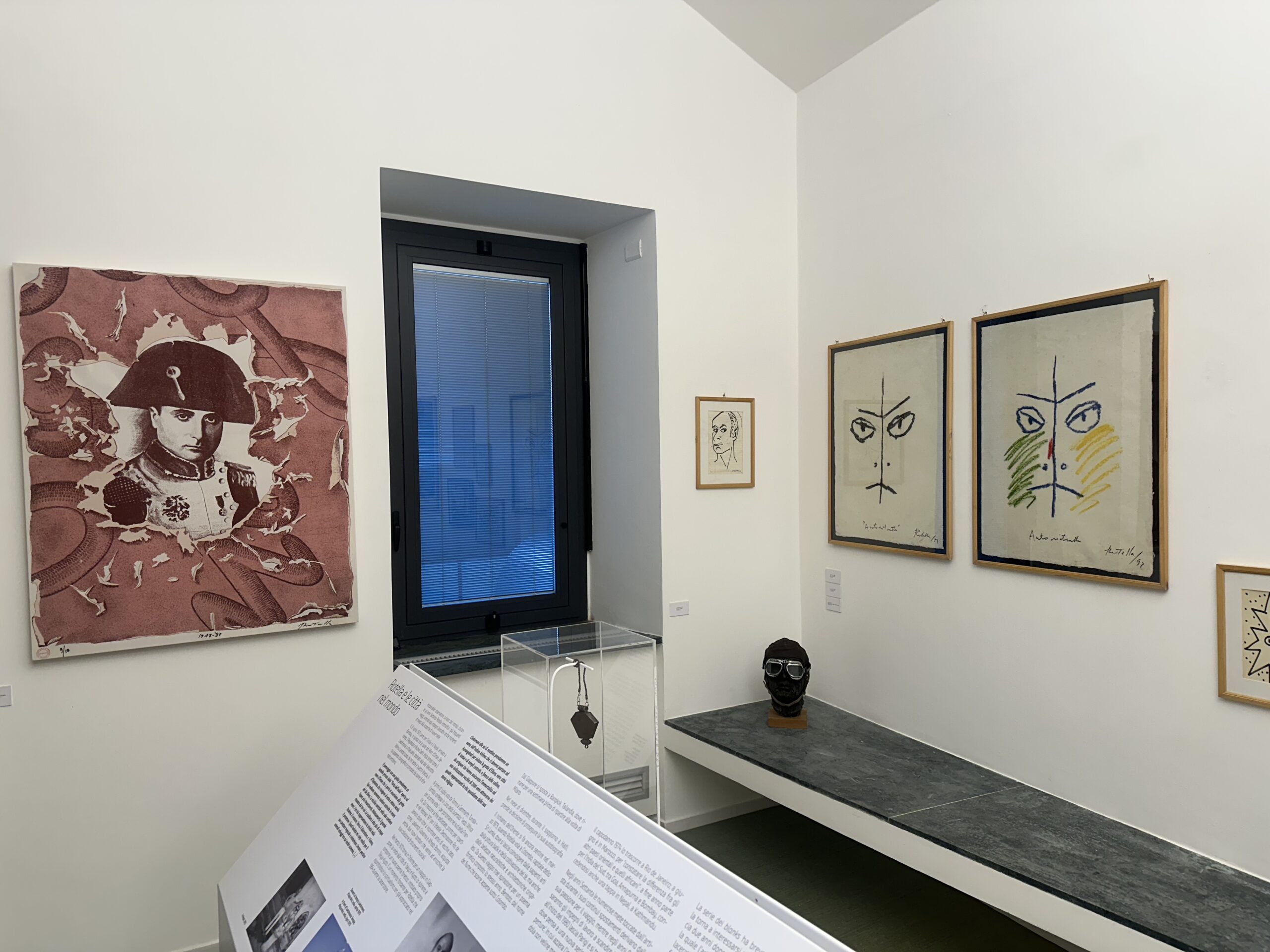 La rassegna, a cura di Alberto Fiz, prende spunto da una serie di opere conservate all’interno della Casa della Memoria per poi arricchirsi con preziose testimonianze messe a disposizione dalla Fondazione Mimmo Rotella, con diretto riferimento all’autobiografia dell’artista che racconta in forma diaristica gli avvenimenti che lo hanno coinvolto tra il 1966 e il 1970. Si viene così a creare una stretta relazione tra parola e immagine nell’ambito di una rassegna che può essere letta come una dichiarazione di poetica, un modo originale per indagare il maestro del décollage attraverso la disseminazione della propria immagine. Le opere selezionate spaziano in un percorso che va dal 1958 al 1999 proponendo una sintesi di tecniche e stili: da Autoportrait, tela emulsionata del 1969, per giungere a Autoritratto napoleonico, lamiera con interventi di décollage e sovrapittura, passando attraverso un’altra lamiera dove compare l’artista con la figlia Asya sulle spalle. Non manca poi una scultura in bronzo con i tratti del motociclista e alcuni disegni autoironici e caricaturali.