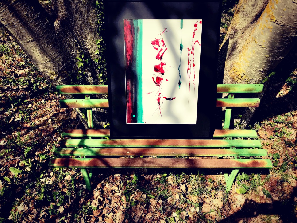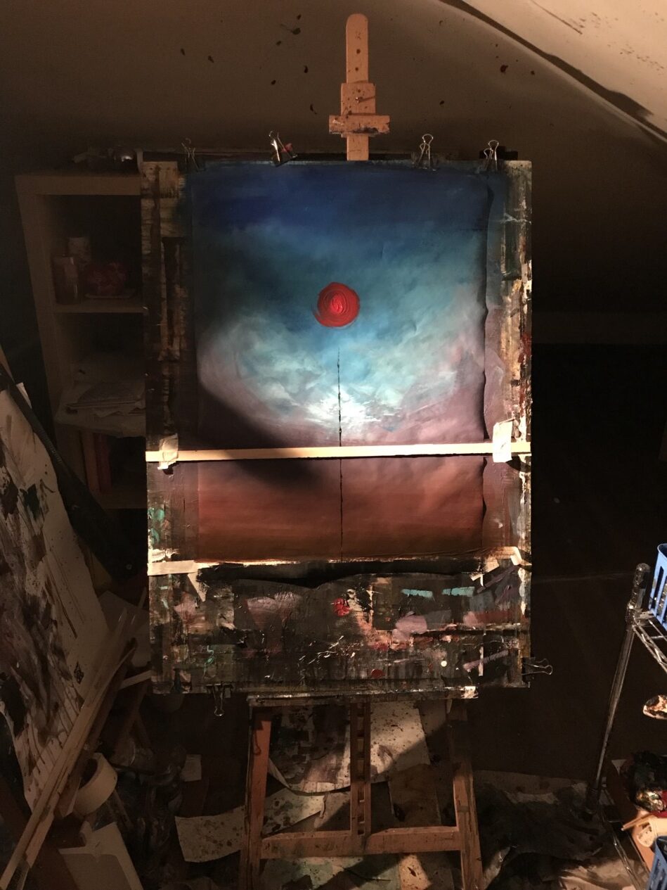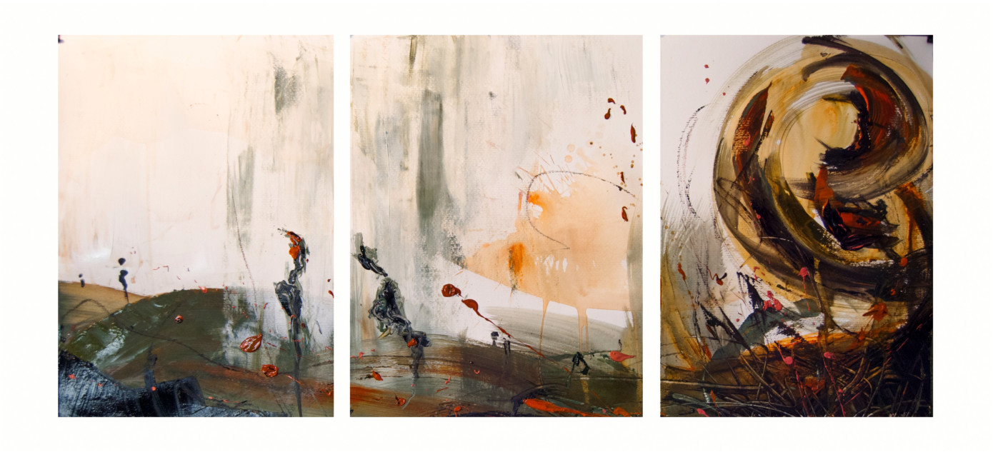Ultimamente mi sono trovata a dipingere favole. Mio fratello Mario ha scritto un libro dal titolo “Favole piccole e foglie di vernice “, edito da Bookabook, all’interno del quale si possono incontrare 5 miei quadri: le “foglie di vernice”, per l’appunto. Le mie “istantanee di una storia” (così mi piace spesso chiamare i miei quadri ) hanno così preso vita davvero. Il procedimento è come sempre quello della simultanea. Mi son state date le favole e le loro registrazioni e ho realizzato le favole dipinte mentre le ascoltavo. In chiave astratta. Un altro progetto ultimato da poco riguarda la copertina per un album in uscita; lavorare con la musica è molto stimolante per me. In parallelo spesso coinvolgo persone che mi raccontino loro storie, faccio quadri “ad personam” ascoltandole parlare. Questo modo di procedere mi emoziona incredibilmente.
