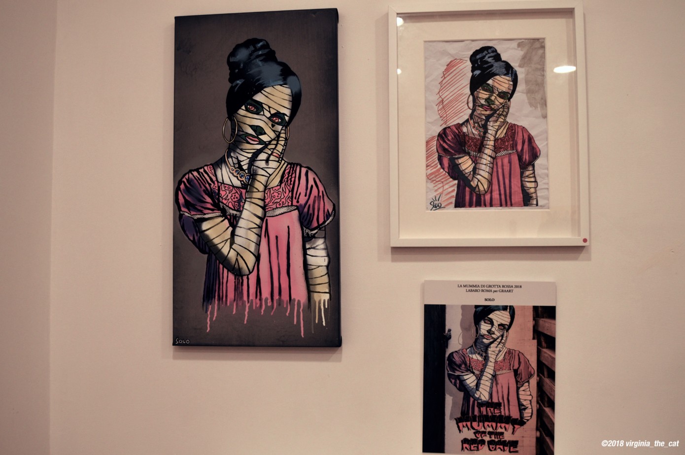 In realtà abbiamo riproposto i nostri muri più emblematici su tela, abbiamo deciso di esporre tutto il processo creativo che si compone di: foto del muro in questione, tela che lo riproduce e bozzetto originale che prepariamo per dipingere.