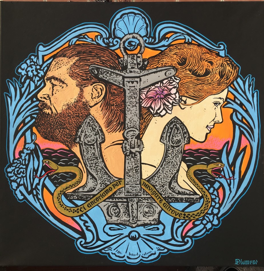 Sono anni che io e Stefano (Diamond) realizziamo spesso delle collettive belle con la Galleria Rosso20sette. Abbiamo dipinto sopra le banconote da un dollaro, i vinili, e a un certo punto è venuta l’idea di farne una noi due.