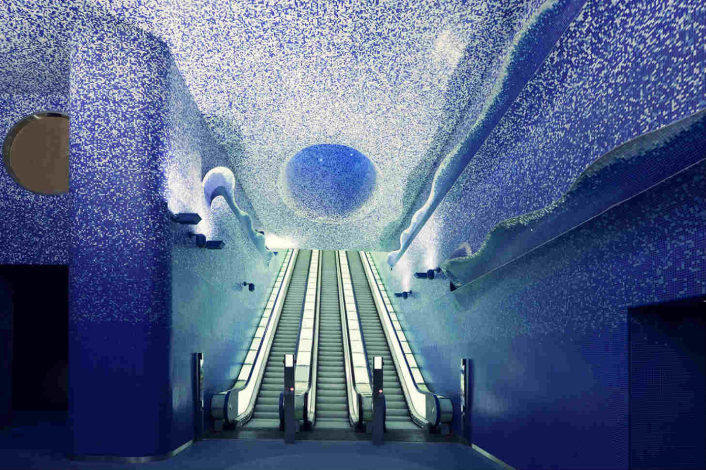 Dalla metro di Napoli ci spostiamo in Svezia precisamente nella città di Stoccolma. La capitale svedese vanta circa 100 km di rete metropolitana, ed oltre alla sua estensione vanta di essere la galleria d’arte più grande del mondo: di 110 stazioni circa 90 ospitano opere d’arte.