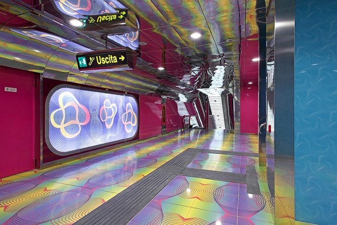 La stazione inaugurata nel 2011 è stata progettata da Alessandro Mendini (architetto italiano) e Karim Rashid (designer anglo-egiziano).