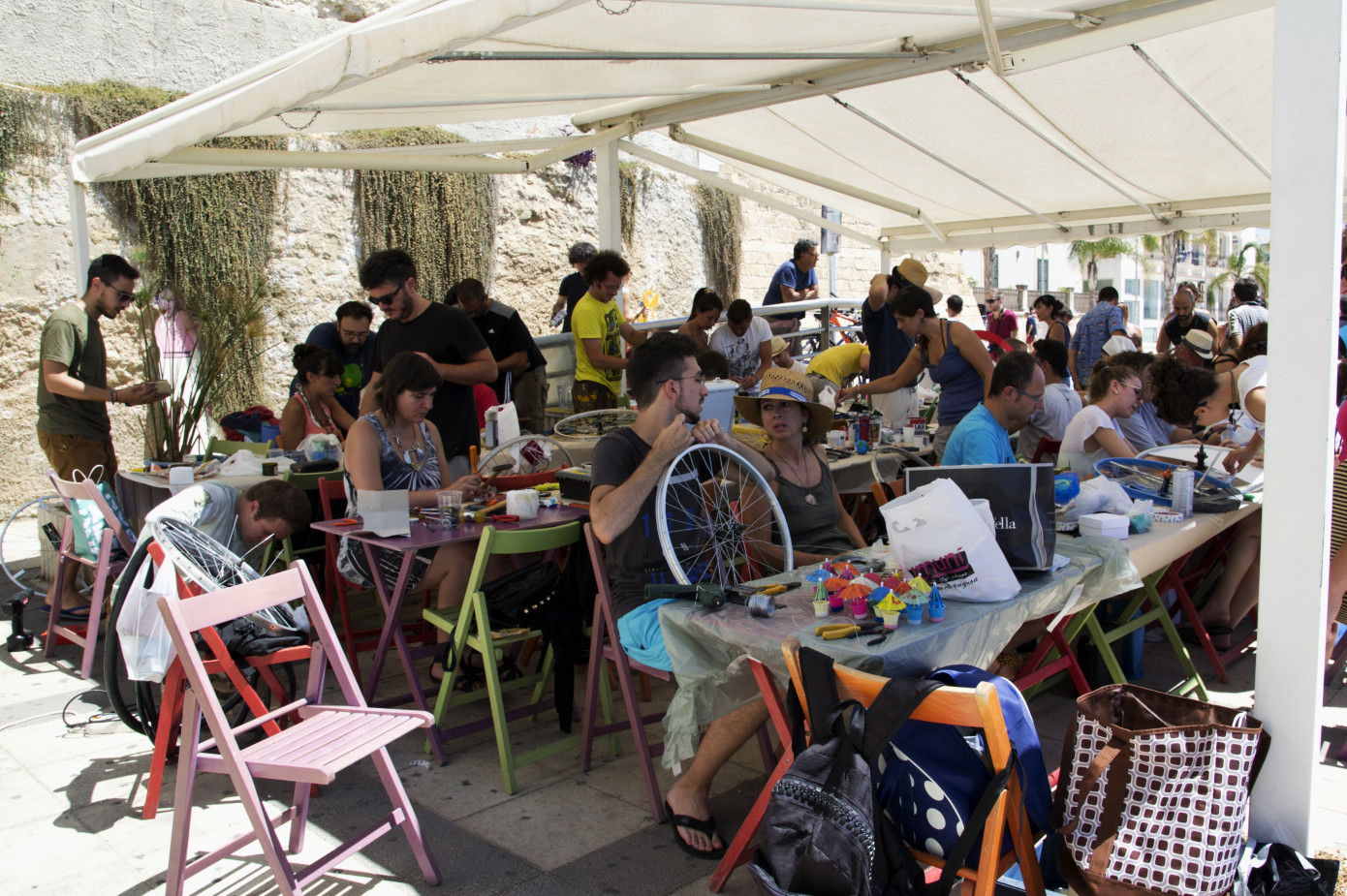 Il momento clou dell’evento è proprio quello del contest, ovvero l’estemporanea d’arte che si svolge l’1 agosto, dalle 10 alle 18, nello spazio antistante il Met. In quella giornata, i creativi sono chiamati a realizzare le proprie opere. Al termine, tutti i lavori vengono ricollocati sul prospetto e lì restano in esposizione per circa tre settimane. Infine domenica 23 agosto vengono proclamati i vincitori e si batte l’asta per la vendita delle opere. A questo punto si potrebbe dire che l’evento sia finito. A noi, invece, piace pensare che in realtà il contest non si esaurisce in quella giornata, ma continua ad avere una propria vita nelle case della gente: acquistando l’opera preferita, si porta a casa un pezzo dell’installazione che ha occupato quello spazio esterno per un determinato periodo di tempo. Un tassello di un tutt’uno, di un ensemble, che ora acquisisce nuovo significato nella propria individualità. Inoltre quest’anno, per dare maggiore continuità all’evento, il primo classificato, e gli artefici delle quattro opere che riceveranno le menzioni speciali da parte della giuria, costituiranno il collettivo che avrà l’opportunità di elaborare e proporre il tema della prossima installazione, in modo che il progetto sia in grado di auto-generarsi senza segnare una vera e propria fine.